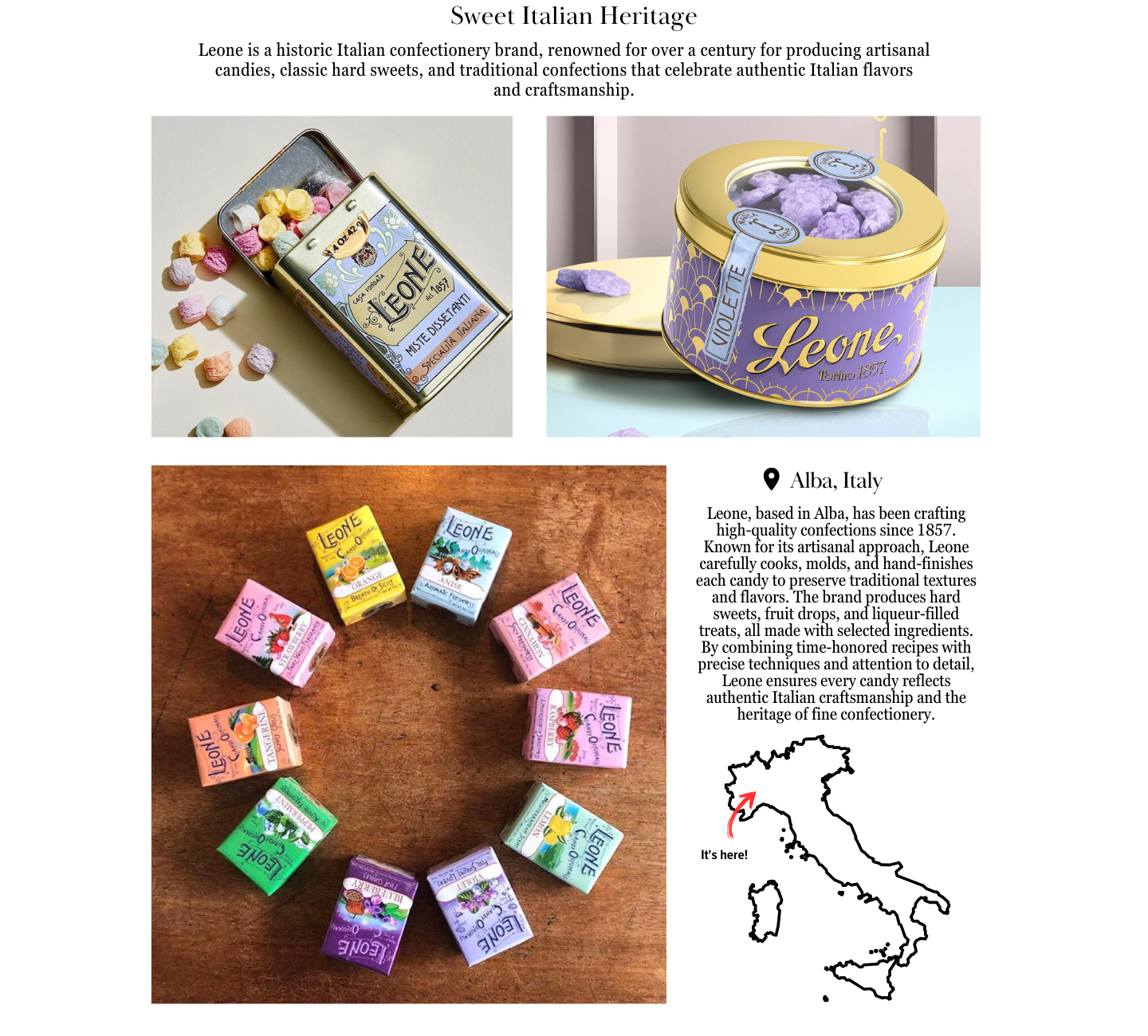 Leone Leone Original Candy Mixed Wild Berries Flavor 1.5oz Sign in for pricing Leone Leone Hazelnut Chocolate Cream in a Tube 4.06oz Sign in for pricing OUT OF STOCK Leone Leone Original Tin Violet Flavor 1.5oz Sign in for pricing OUT OF STOCK Leone Leone Original Candy Anise Flavor 1.5oz Sign in for pricing OUT OF STOCK Leone Leone Original Candy Strawberry Flavor 1.5oz Sign in for pricing OUT OF STOCK Leone Leone Original Candy Raspberry Flavor 1.5oz Sign in for pricing OUT OF STOCK Leone Leone Original Candy Orange Flavor 1.5oz Sign in for pricing OUT OF STOCK Leone Leone Original Candy Blueberry Flavor 1.5oz Sign in for pricing OUT OF STOCK Leone Leone Classic Licorice Box 0.35oz Sign in for pricing ×