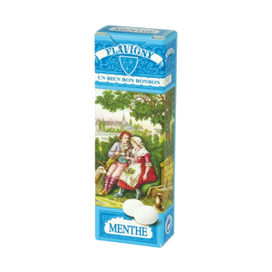A classic French confection from Les Anis de Flavigny, a traditional candy maker in Flavigny-sur-Ozerain dating back centuries. These petite mint sweets are hard-coated pastilles with a subtle, refreshing peppermint flavor and a tiny anise seed at their core, offering a delicate balance of sweet and cooling notes.