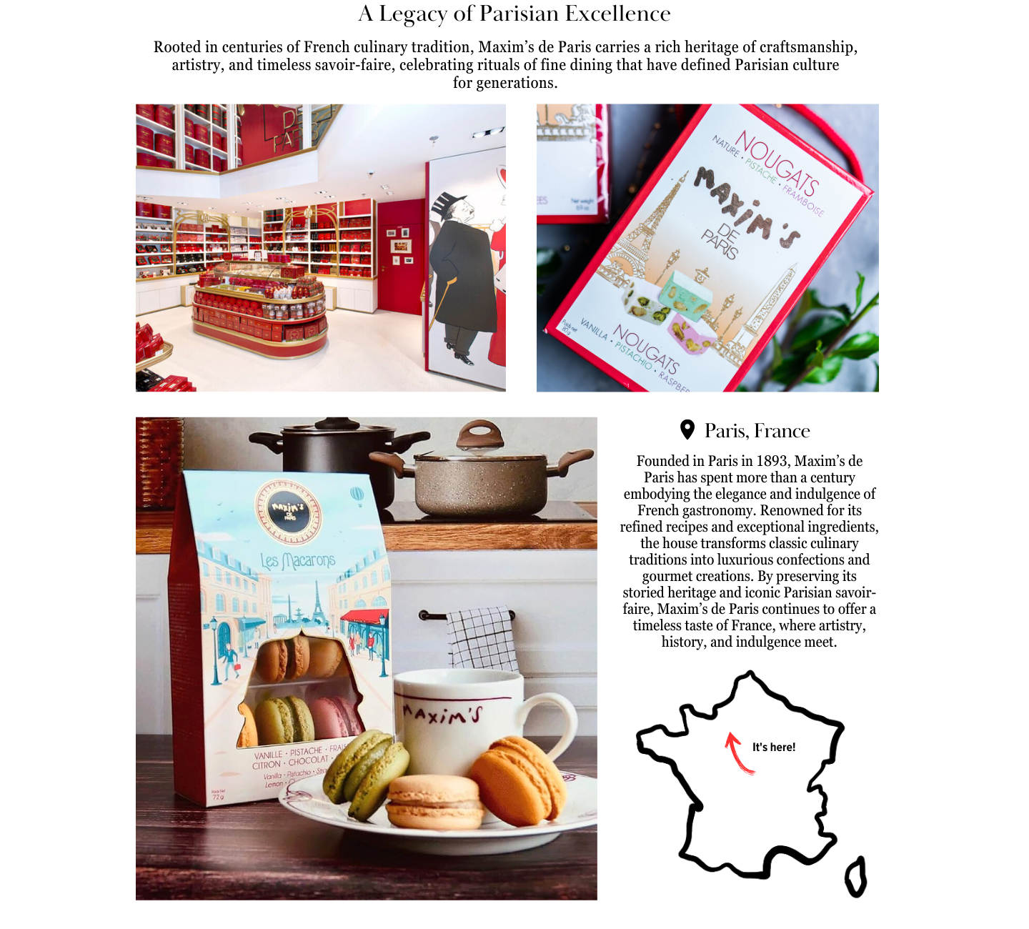 Maxim's de Paris Maxim's de Paris Nougat Gift Box 2.8oz Sign in for pricing Maxim's de Paris Maxim's de Paris Pate de Fruits 4oz Sign in for pricing Maxim's de Paris Maxim's de Paris Maxim's de Paris 32 French Specialties 6.9oz Sign in for pricing ×